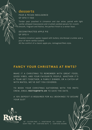 This year, we’re bringing the festive spirit Rwts style - with bold flavours, laid-back vibes, and a menu that’s as fresh as the sea.